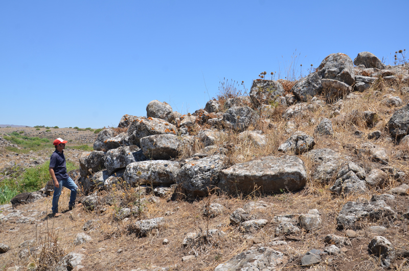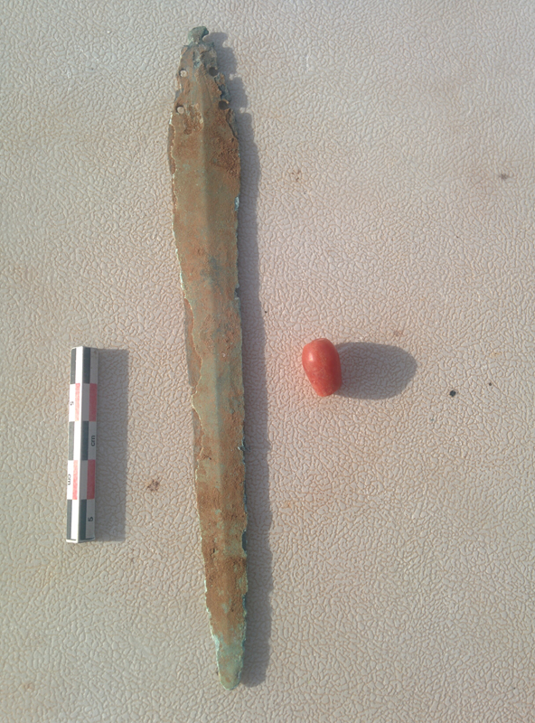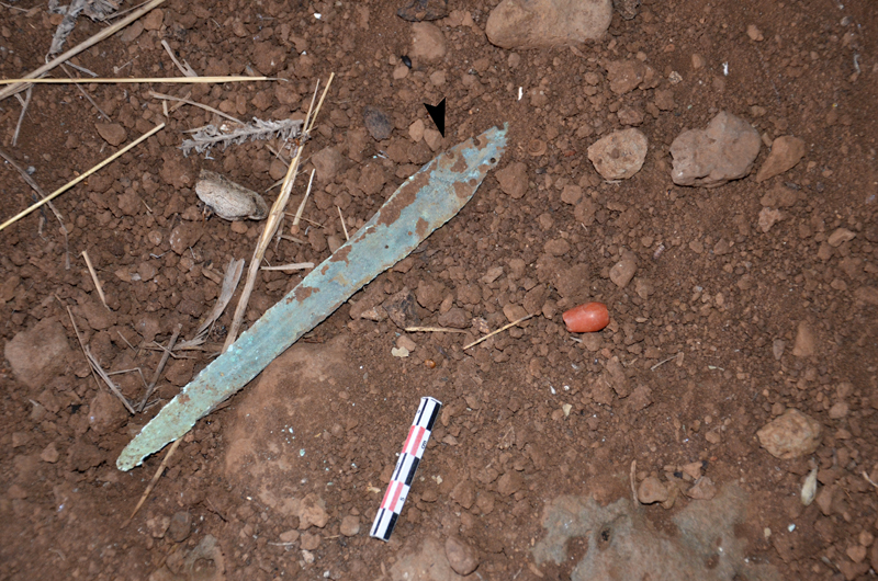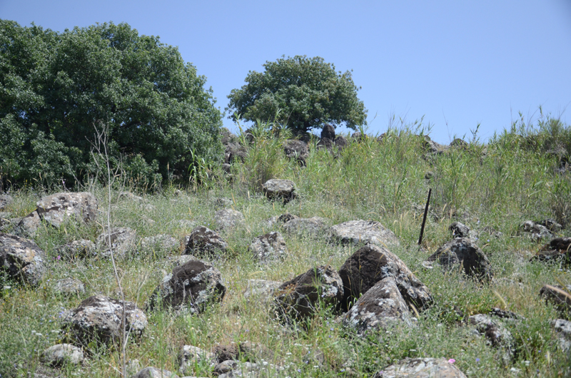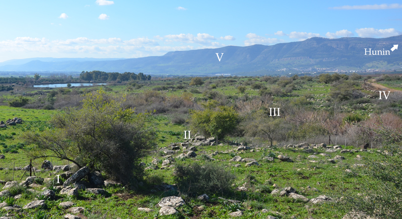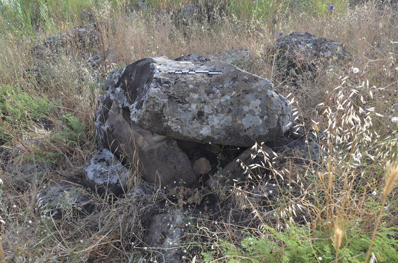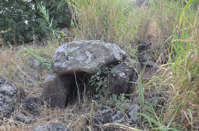 Large dolmens field east of Gesher Benot Ya’aqov. Partly excavated by Clair Epstein. Surface finds – Bronze dagger & red bead