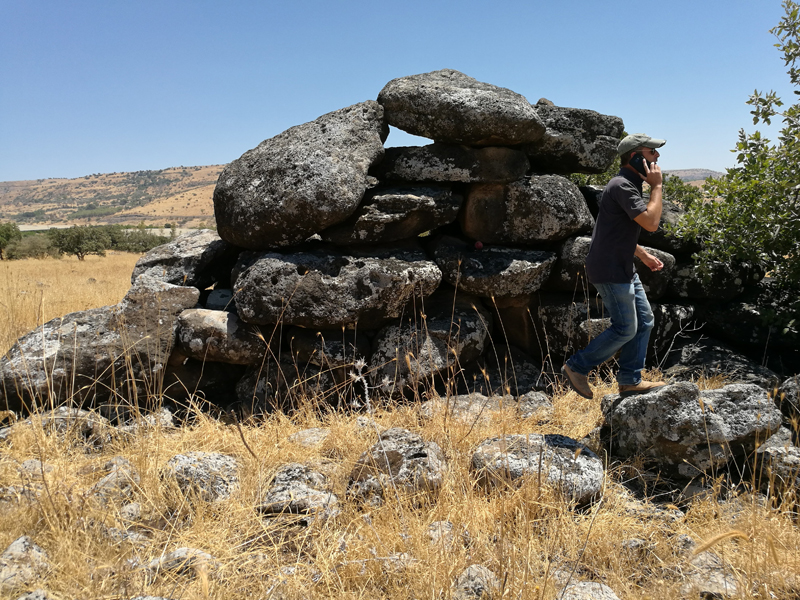 In the spring of 2016, the Berger & Sharon conducted a survey in the footsteps of the royal delegation in an attempt to find the dolmens. Twenty-four dolmens and numerous additional stone structures were documented in this heavily disturbed region. The area has been subject to damage by military activity, development (including the laying of the `Tapline` oil pipeline between Iraq and the Lebanese shores), and agricultural activity. The actual dolmens described in Conder’s report were finally identified in the summer of 2018 (Prince Albert Victor and Prince George of Wales 1886).