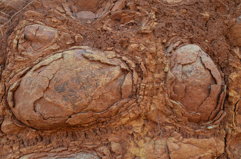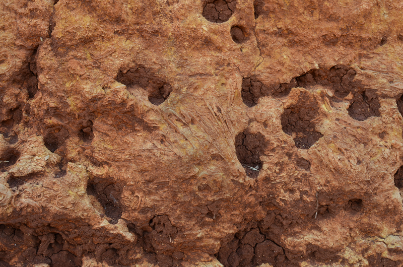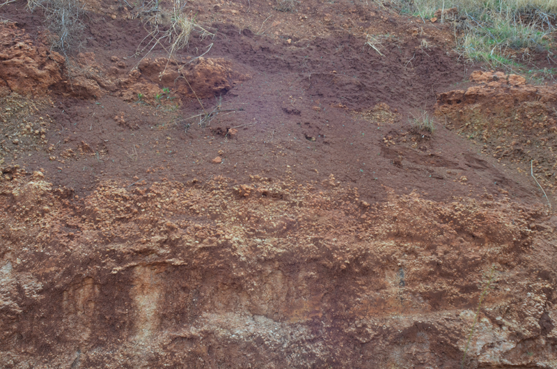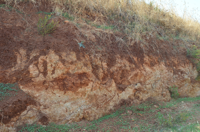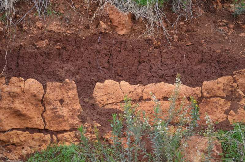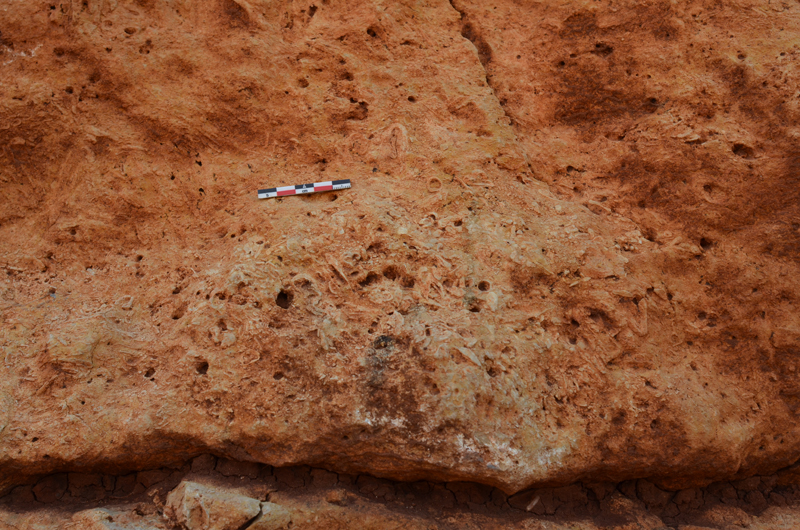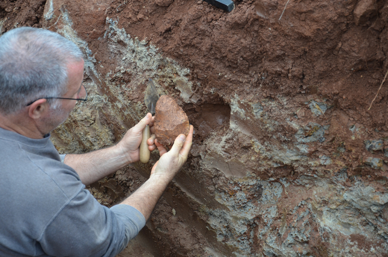Stratigraphy – The tools apparently originated in the red-colored soil topping the tufa (travertine) layers. For unclear reasons, varying quantities of travertine cover some of the tools.
