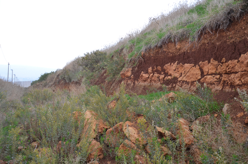 Geology – The geology of the area includes a layer of soil (terra rossa) covering a thick layer of travertine (Kfar Yuval Travertine), which in turn overlies basalt bedrock (Hasbani basalt; Stekelis and Gilead 1966 after Picard 1963).