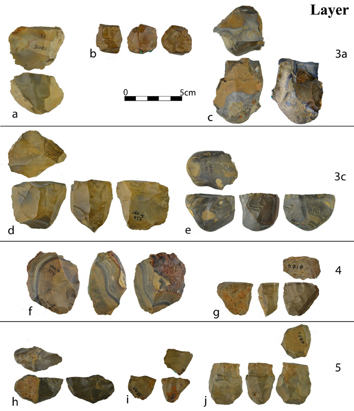 Future technological analysis of the JRD assemblage will provide a more detailed picture of the cultural and functional aspects of the occupations and the reduction sequences (chaînes opératoire) used to produce tools. To date, preliminary observations suggest that many tools were manufactured on byproducts of reduction (CTEs and primary flakes) rather than on ‘formal’ blanks. Some tools were also recycled for new purposes. Currently, it is difficult to connect the lithic assemblages to a specific set of tasks; although the quantities are small, a large repertoire of tool types is represented. Still, the unusually high incidence of burins in layers 3c, 4 and 5 suggests continuity in the activities performed across the long sequence of repeated occupations.