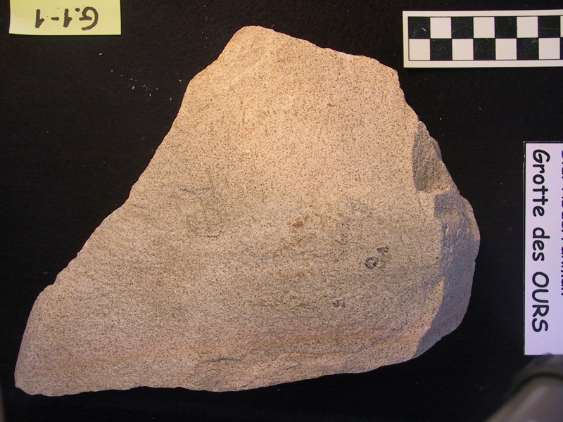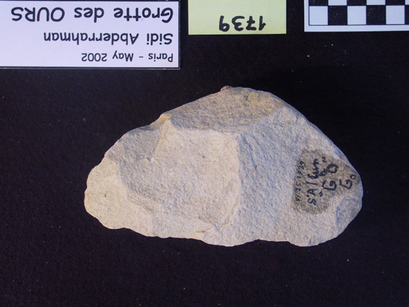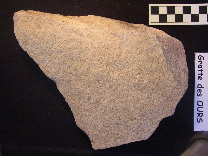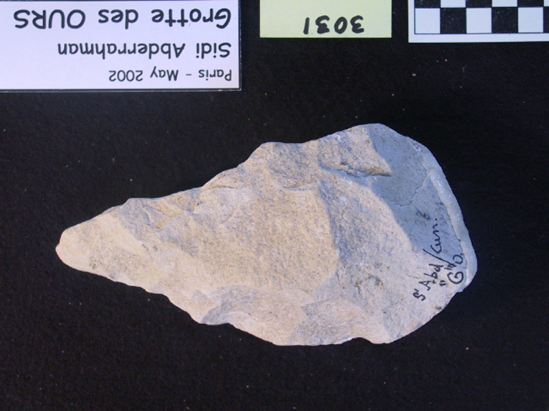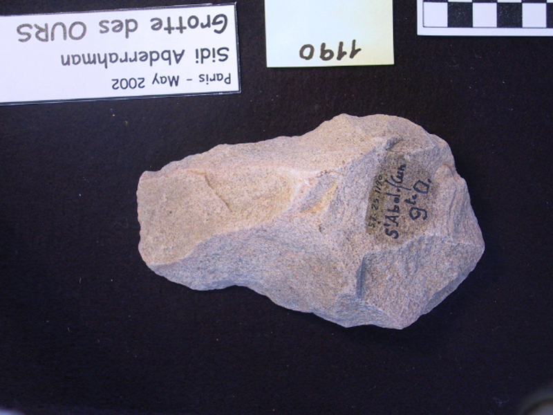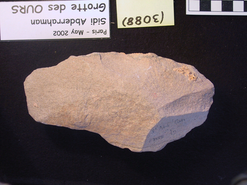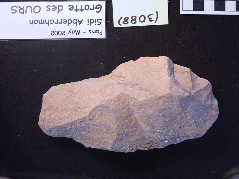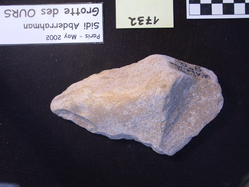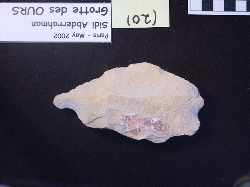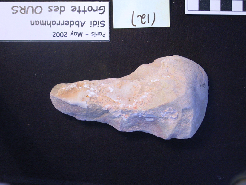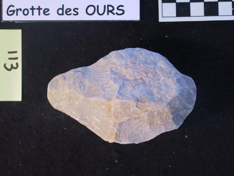 Raw materials – All of the LCTs at Grotte des Ours are made of quartzite. It would seem that this raw material was available in the vicinity of the site in the shape of large rounded cobbles (Biberson 1961). However, no detailed description is available.