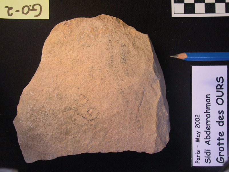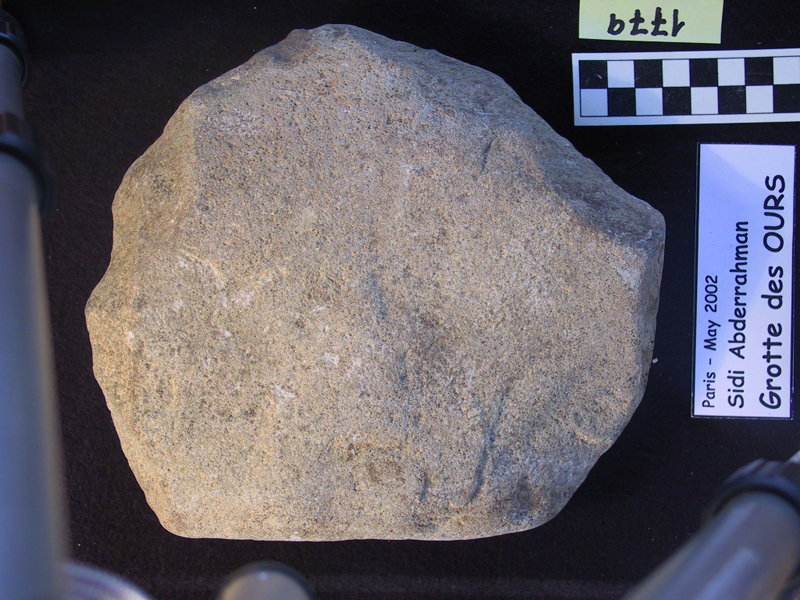 Stratigraphy – Three archaeological layers were identified in the cave, situated in the lower part of the main Sidi Abderrahman general section (Fig. A7). The archaeological layers correspond to the three stages of rise in sea level during the Anfatienne Phase (Biberson terminology). The layers were designated (from bottom to top) G0, G1 and G2. The richest in fauna and artifacts was G0 (Fig. A7). G2 was very poor in finds, with most of the artifacts emerging from the inner part of the cave. Evidence of knapping, as well as of bone and meat processing, was found. Biberson has the preference of this part of the cave was due to its greater proximity closer to a freshwater spring as well as to quartzite cobbles, a major source of raw material. An alternate explanation for the richness of the inner part of the cave is that a flood possibly shifted artifacts from their in-situ position during an elevation in sea level in the climatic stage following their deposition, also causing some tool loss.