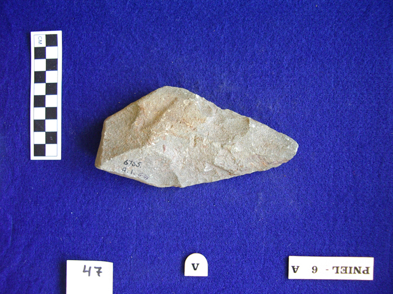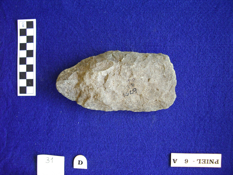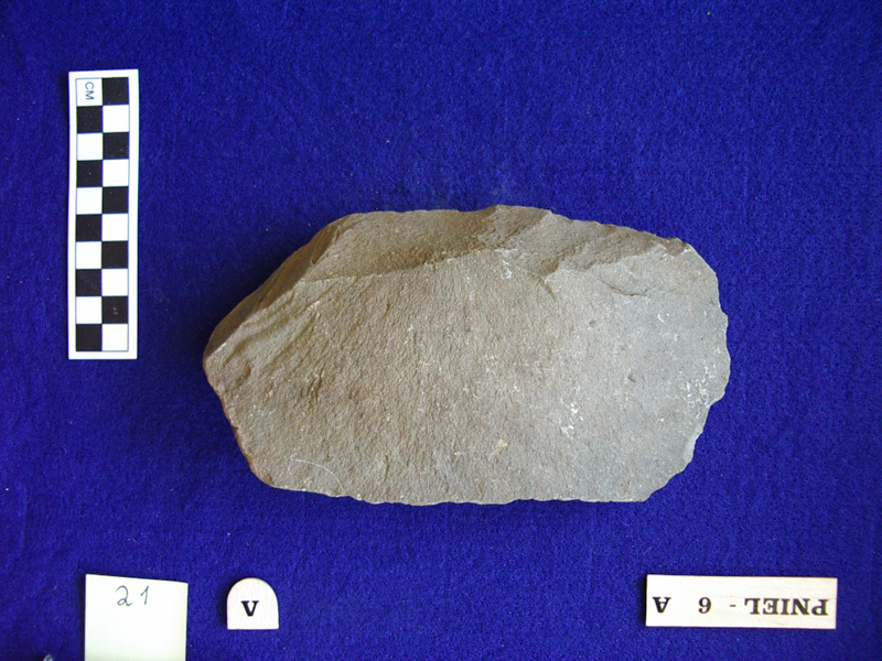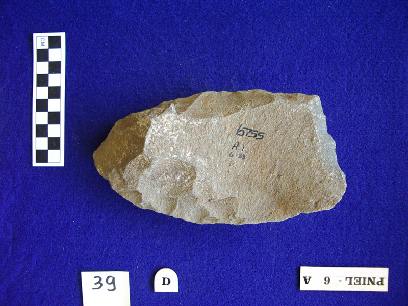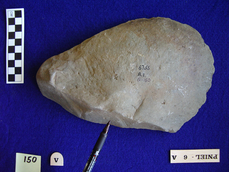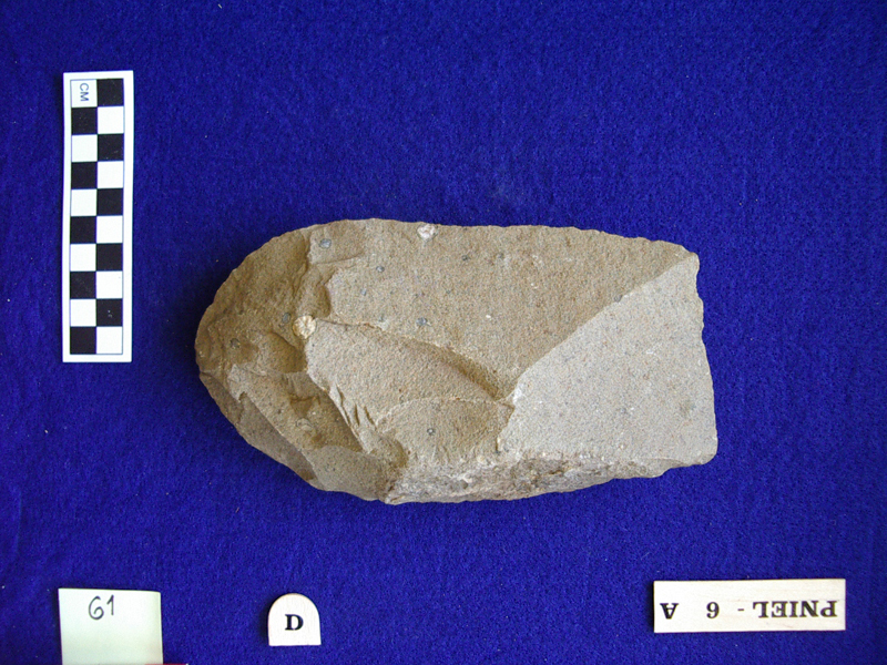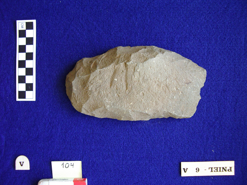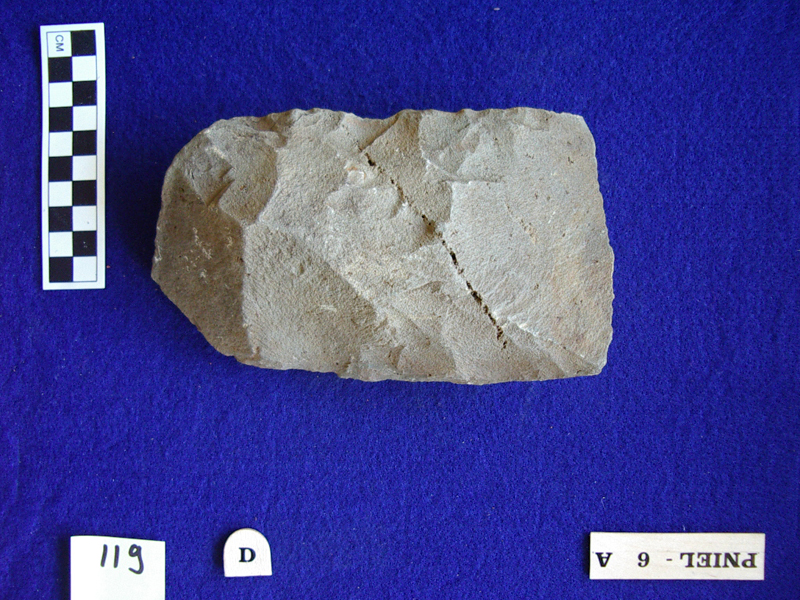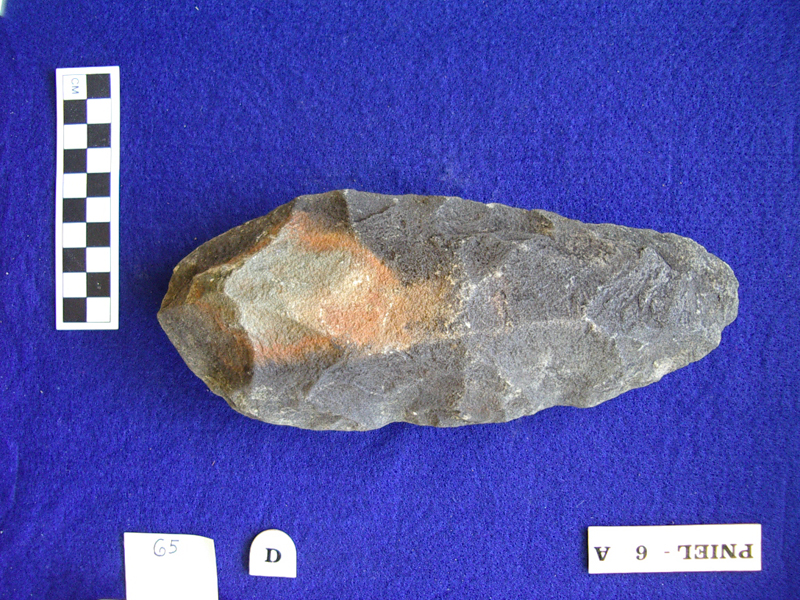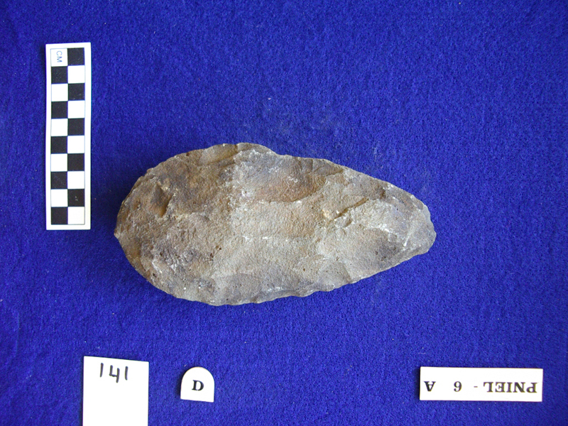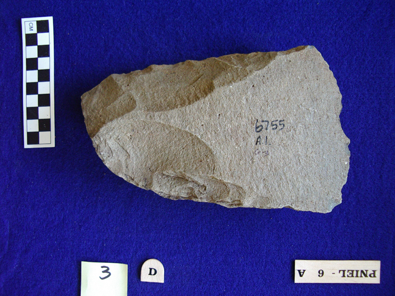 History of Research – The site was brought to the attention of archaeologists by the work of van Hoepen (Beaumont 1990). Beaumont’s systematic survey and fieldwork enabled him to establish a basic stratigraphy and chronology for the site. During the summer of 2000, an excavation covering 5 m2 was directed by McNabb (2001). Excavation by McNabb (2002) has confirmed the sterile nature of both Strata 1 and 2, and Beaumont’s observations on the nature of Stratum 3 and its distinction from Stratum 4. However, the lithic assemblage originating in the contact surface between Strata 3 and 4 is MSA (laminar and convergent Levallois artifacts), dominated by hornfels as its raw material. These features, coupled with the near-absence of bifaces (only two heavily rolled handaxes were excavated in this layer), mark a significant divergence from the Pniel 6 Acheulian assemblages that had been collected earlier (McNabb 2002).